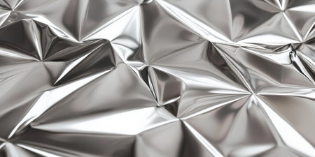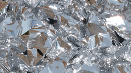 This image showcases a shimmering crumpled silver foil surface that reflects light beautifully, ideal for artistic and creative projects, enhancing visual appeal.