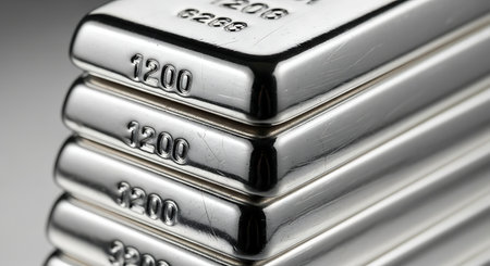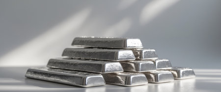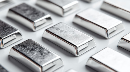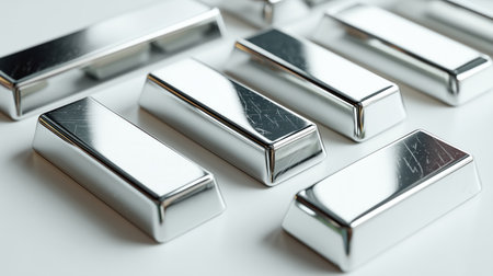 AI Generated. Stack of Shiny Silver Bullion Bars Precious Metal Wealth Concept