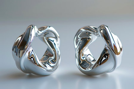 Molten metal style earrings, silver color and flowing shape. With Generative AI technology.