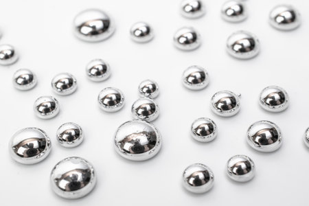 Shiny silver metal, essential chemical element in industry and jewelry.