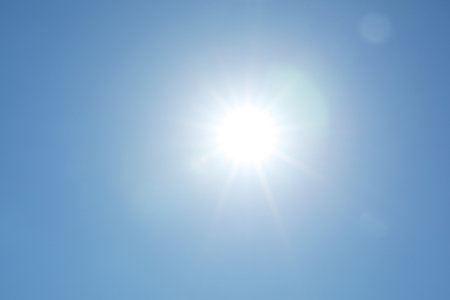 Shining sun at clear blue sky with copy space