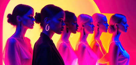 Fashion portrait of beautiful young women in neon light. Studio shot.