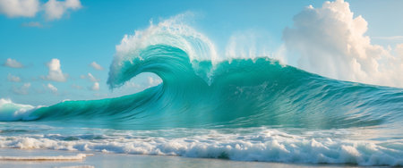 AI Generated. Vibrant Turquoise Ocean Wave Crashing on Shore