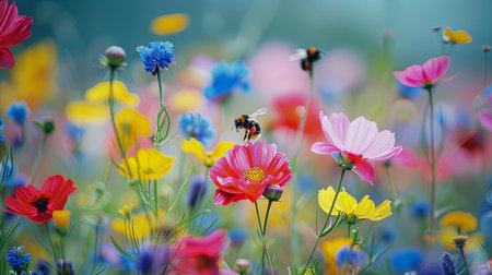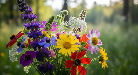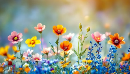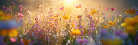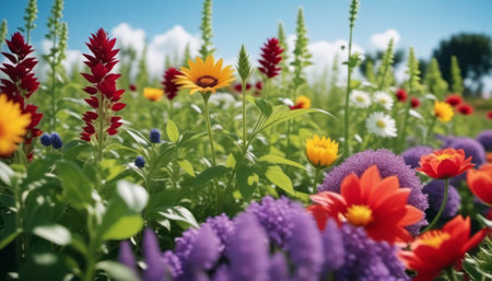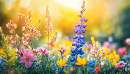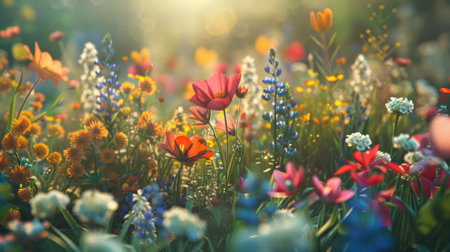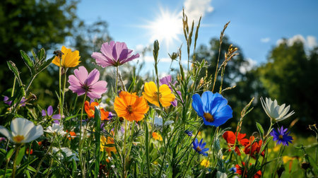Vibrant wildflowers bloom in a sunny meadow during springtime