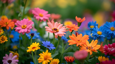 AI Generated. Vibrant spring flowers blooming in a colorful garden