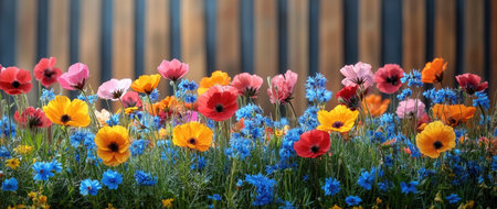 A beautiful mix of wildflowers growing in a garden, with their vibrant colors and natural arrangement creating a stunning scene.