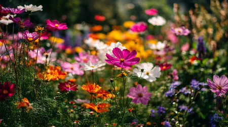 Vibrant Cosmos Flowers in a Sunny Meadow Bring Joyful Natural Beauty