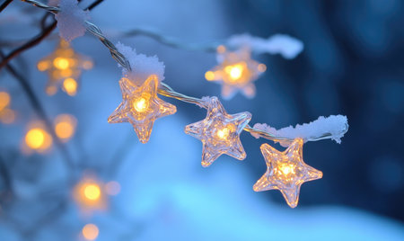 String lights with glass stars, cool white glow