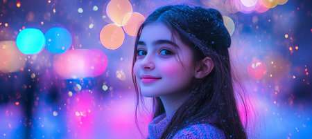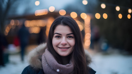 Portrait of a Happy Young Girl with Sparkling Eyes and a Warm Smile, Enjoying the Festive Atmosphere
