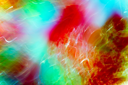 Photo art, bright Colorful light streaks abstract background in blue, purple, yellow and green colors