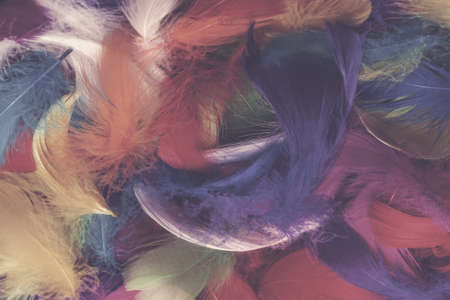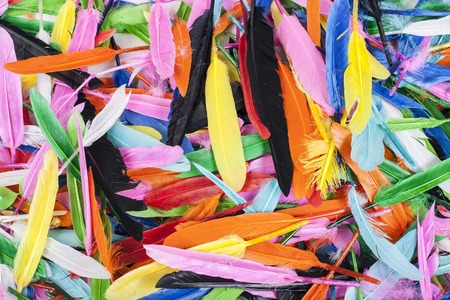 Studio shot photo of colored bird feathers as texture background