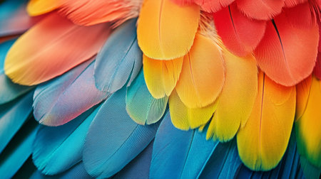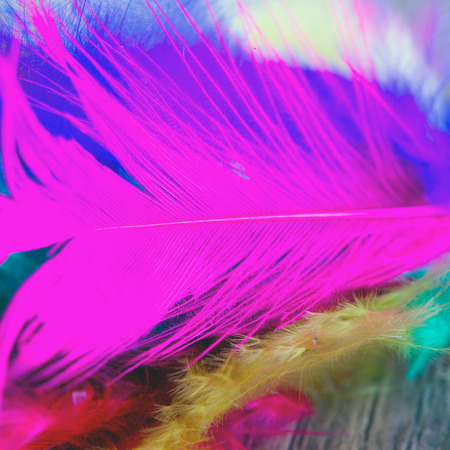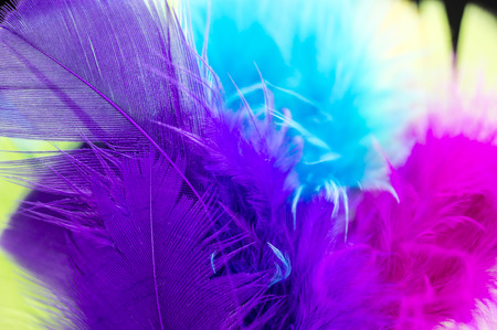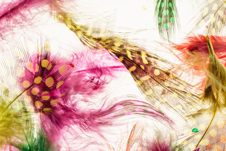Close up to bright colorful feathers background