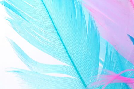 close up of blue and pink feathers texture background. soft focus.