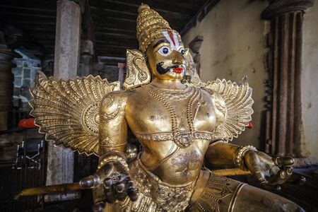 SRIRANGAPATNA, KARNATAKA, INDIA - OCTOBER 20, 2018: Garuda, Vishnu's man-bird vahana in Ranganathaswamy Temple, Srirangapatna