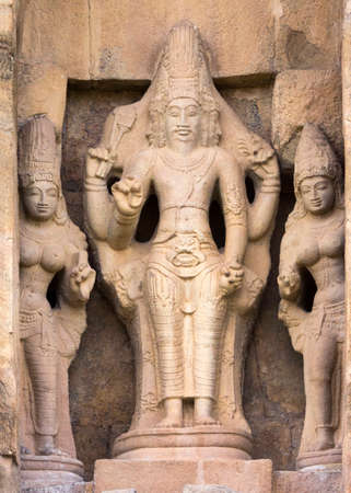 Statues of Hindu God. Sculptures of God idols carved in the walls of ancient Brihadeeswarar temple in Thanjavur, Tamilnadu.