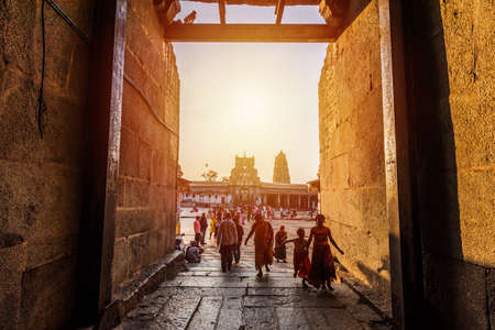 Hampi, Karnataka, India - January 12, 2020 : Stunning view at Sree Virupaksha Temple, located in the ruins of ancient city Vijayanagar at Hampi