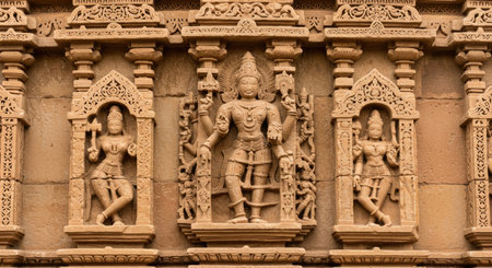 stone carving of hindu gods at a temple, created with generative ai