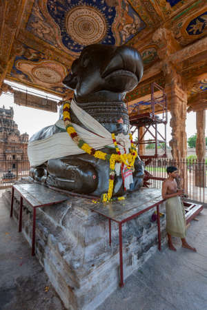Nandi mandapam (sacred cow) at the Brihadishvera Hindu Temple in the city of Thanjavur (Tanjore) in the Tamil Nadu region of southern India.