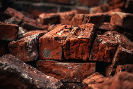 Close-up shot of rustic red brickwork, highlighting the textures and varied hues, ideal for design and architecture-themed stock photos AI generation