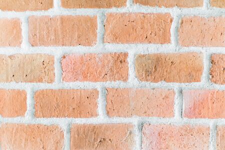 Home decoration concept and abstract background.Many brown brick blocks with white cement. Closeup view of brick blocks wall. The wall texture and background for wall design. Texture of brown brick blocks wall and copy space.