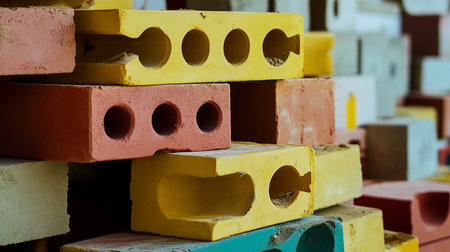 AI Generated. Stacked rustic bricks creating a sturdy foundation for construction