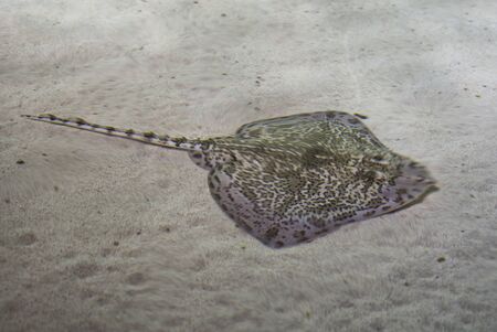 Stingray motoro (Potamotrygon motoro) in an aquarium on a sandy bottom.