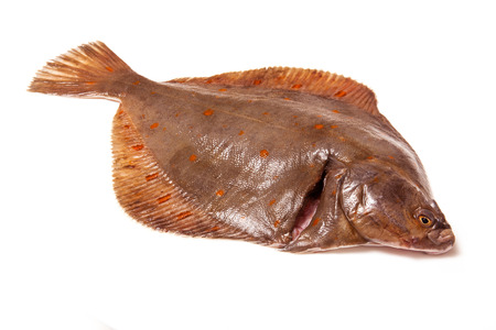 Flounder fish isolated on a white background. Fresh baltic flounder