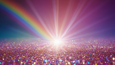 Vibrant abstract background with rainbow gradient light on a sparkling, faceted surface and bokeh lights. Perfect for festive, party, or futuristic...
