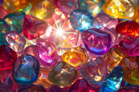 This stunning close-up image showcases a collection of vibrant gemstones in various colors, reflecting light and enhancing the artistic appeal for decorations.