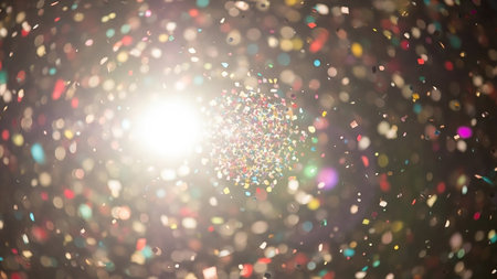 Random showing dynamic explosion of colorful confetti glitter and disco ball fragments creating a sparkling abstract background with bokeh effects keywords:...