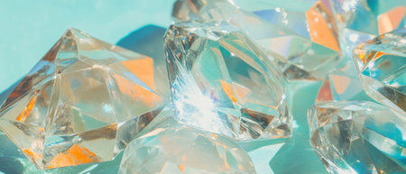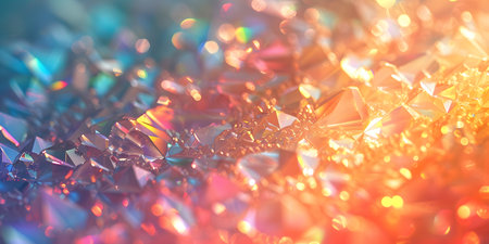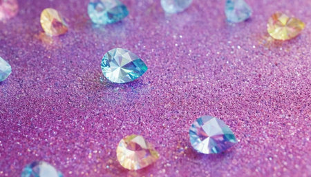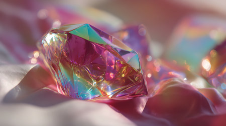 This image showcases clear gems reflecting vibrant light against a soft, colorful background, capturing the beauty and elegance of luxurious decorations. Perfect for artistic themes.