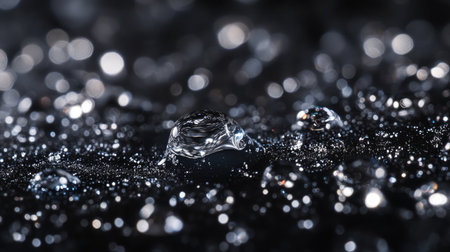 A mesmerizing scene capturing water drops and sparkling gems, creating an enchanting display of light and reflections in nature.