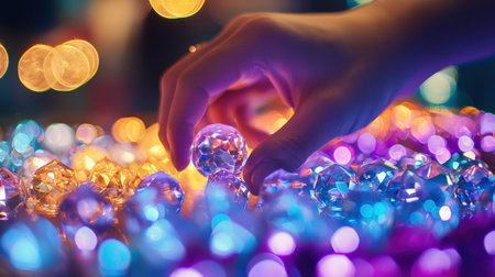 A stunning close-up image featuring sparkling gems and colorful lights, creating a luxurious and vibrant background perfect for creative projects and elegant themes.