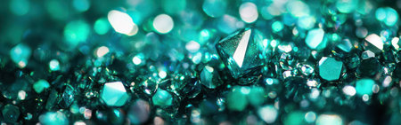 Close-up view of shimmering turquoise and emerald green crystals reveals an enchanting interplay of light and reflection, creating a beautiful bokeh effect that mesmerizes the eye.