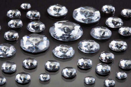 Diamond elements close-up on a black background. Abstraction. Defocused.