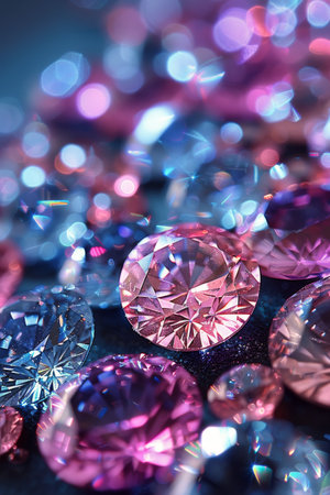 close up of a beautiful diamond on a black background with bokeh