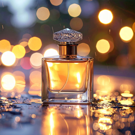 Perfume bottle with aromatic floral scent, luxury fragrance for women