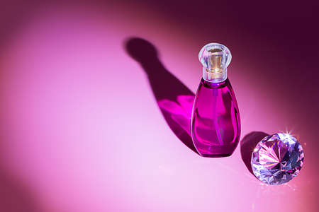 bottle of perfume on a colored background shadow