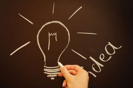 Light bulb and text idea on a black chalkboard with chalk dust