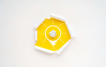 Creativity inspiration, ideas concepts with lightbulb from paper crumpled ball on color background. Business concept for personal ladder of success process