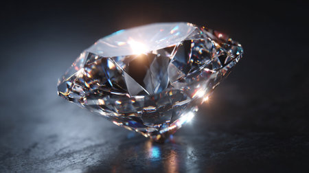 A perfectly cut diamond, a symbol of ultimate luxury and timeless value, rests upon a mysterious, dark surface.