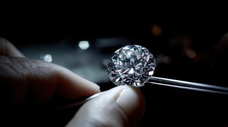 A stunning round diamond positioned on a dark background, showcasing its brilliant facets and exceptional clarity. This image captures the essence of luxury and elegance.