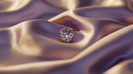 Close-up of a sparkling diamond gem resting on a soft silk cloth, its brilliance shining under a spotlight.
