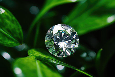 AI Generated. Sparkling round cut diamond on reflective surface