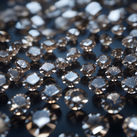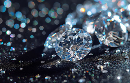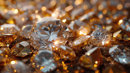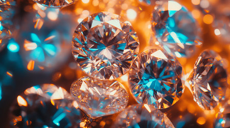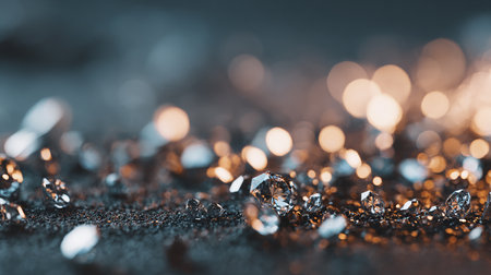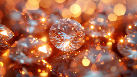 This captivating image showcases a close-up of glimmering diamonds reflecting radiant light, creating an enchanting sparkle. Perfect for luxury themes.