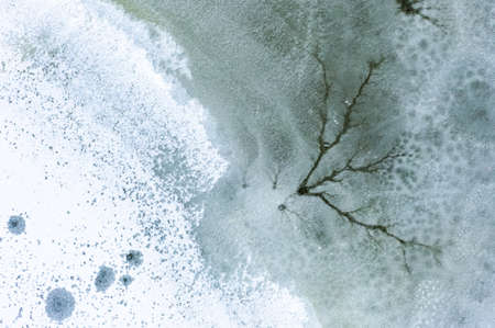 Unique winter texture on Baikal Lake with cracks and methane bubbles. Top view, high quality, abstract background