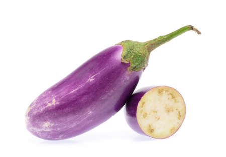 Fresh organic Thai purple eggplant on white background, Food ingredient