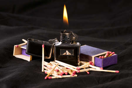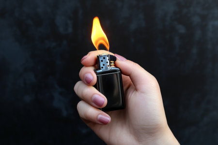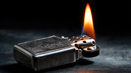 Lighting a Close-Up on Dark Black Background. Concept of Handheld Firestarters, Vintage Collectibles, and Urban Aesthetics.