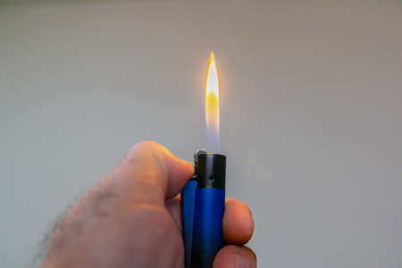 Hand of burning gas lighters, Portable device used to create a flame, Close-up