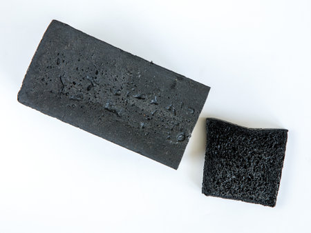 Bar toilet with the addition of activated carbon on a white background, close-up